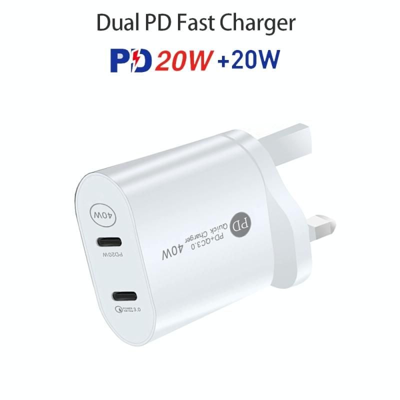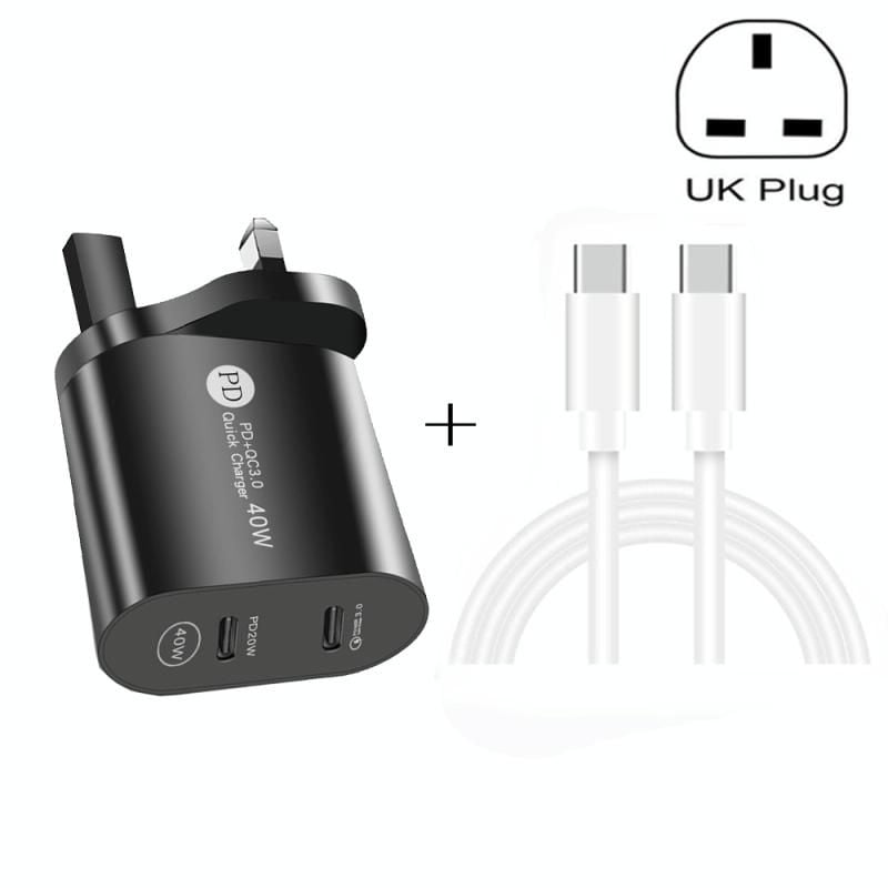 002 40W PD3.0 Bộ sạc USB-C / loại C / loại C / C Cáp dữ liệu Type-C để loại C, UK Plug (Trắng)