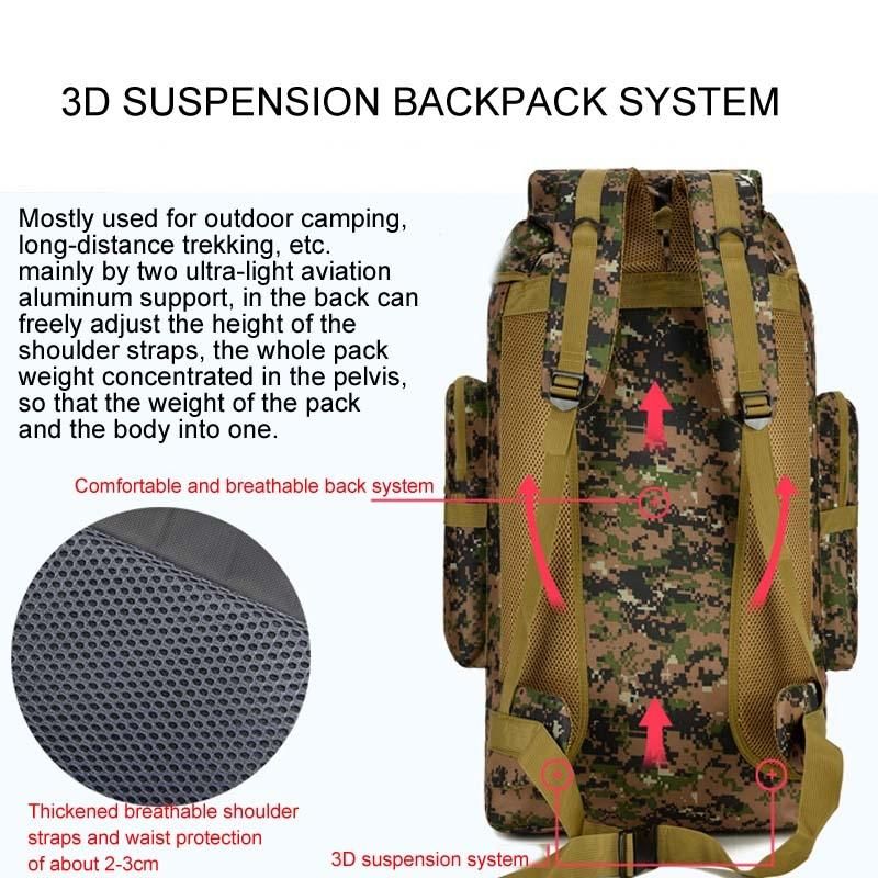 56-75L Túi đi bộ đường dài du lịch dung tích lớn Ba lô chống nước và chống trầy xước (Đen)