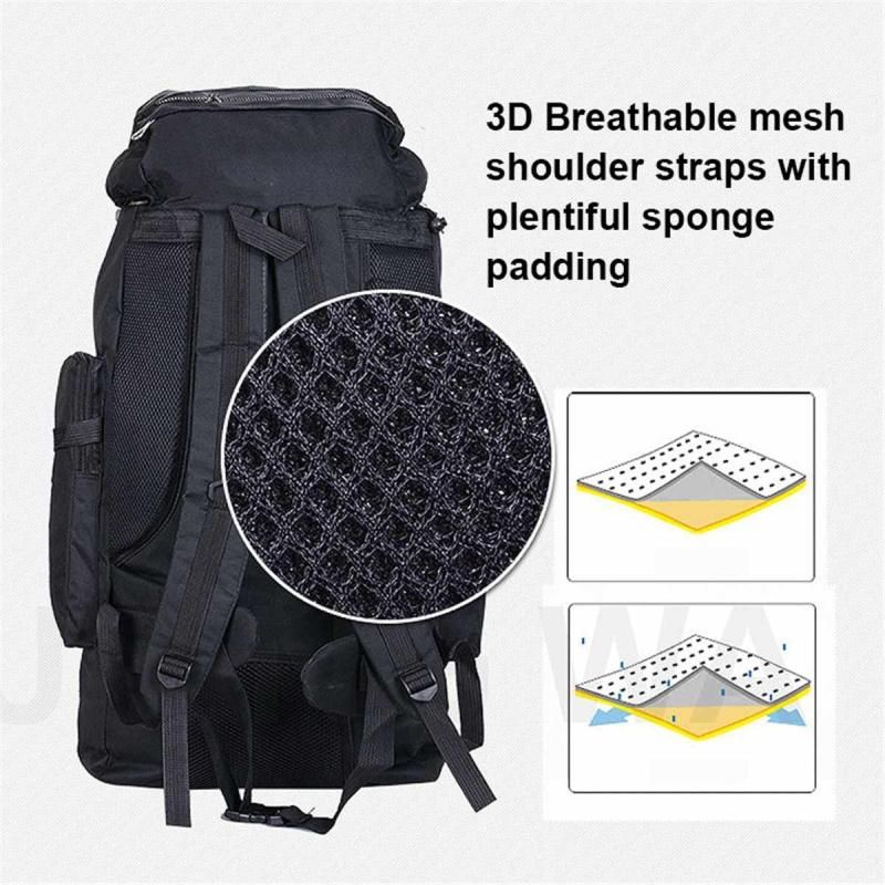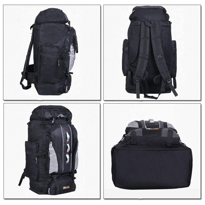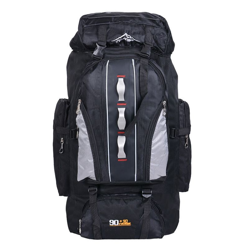 90L + 10L Túi đi bộ đường dài bằng nylon chống nước công suất lớn ngoài trời đa chức năng (Màu đen)