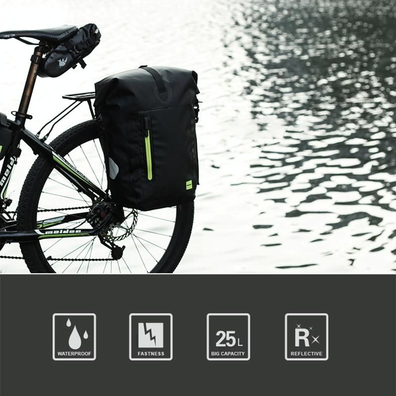 Ba lô xe đạp Rhinowalk Túi có kệ chống thấm nước đầy đủ Túi khung đơn 25L Túi đựng xe đạp du lịch đường dài (Xanh đen)