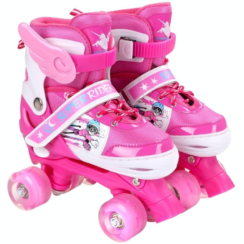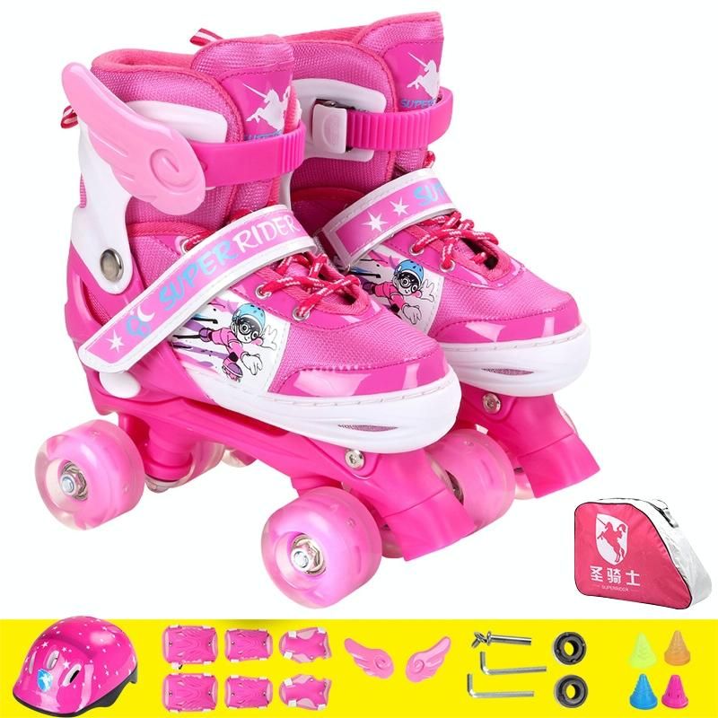 Có thể điều chỉnh đầy đủ đèn nháy cho trẻ em Bộ đôi giày trượt patin bốn bánh cho trẻ em, Kích thước: S (Hồng)