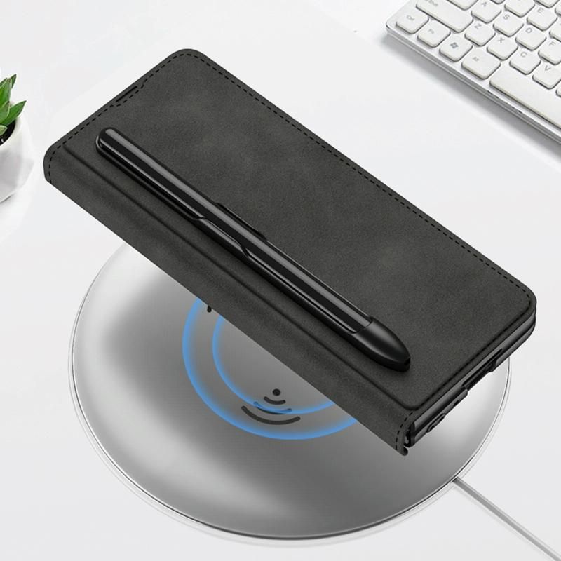 Dành cho Samsung Galaxy Z Fold5 Bao da điện thoại nắp gập GKK Armor có khe cắm bút (Kết cấu vải)